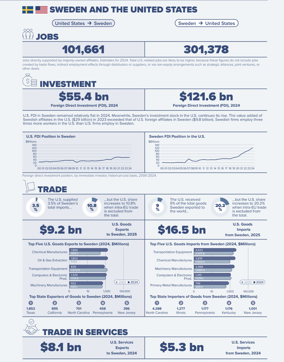 Sweden 2024 FDI in the U.S. – $121.6 billion